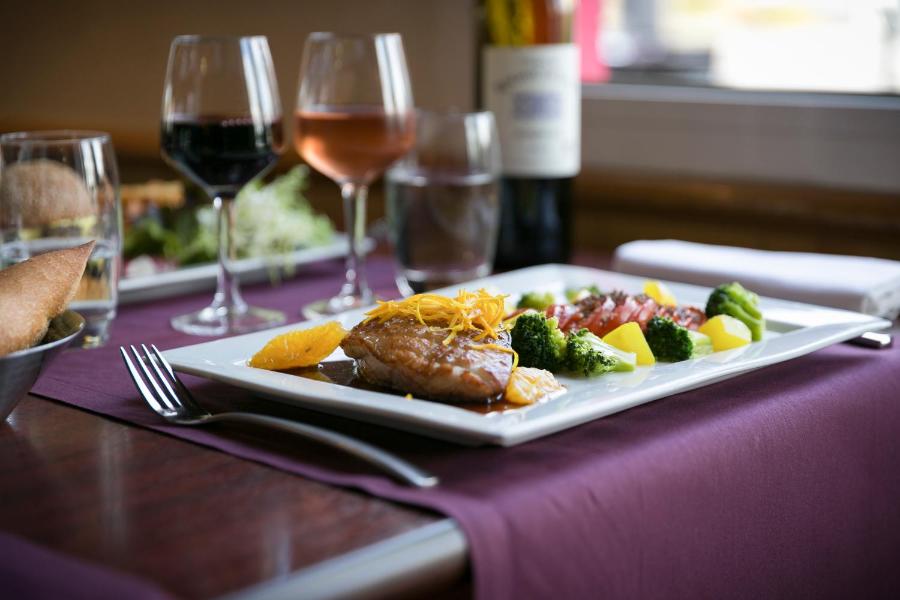 El restaurante Le Castel, ubicado dentro del hotel, ofrece cocina francesa tradicional elaborada con productos locales y de temporada. Ya sea para un almuerzo de negocios, una cena en familia o un momento agradable entre amigos, el chef y su equipo se esfuerzan en brindar una experiencia culinaria de calidad. El bar del hotel, con su terraza exterior, también es un lugar apreciado para relajarse después de un día ajetreado, en un ambiente elegante y desenfadado.
