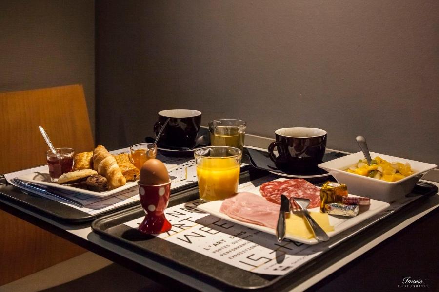 Por la mañana, se ofrece un desayuno buffet en la sala o directamente en la habitación. Los domingos, el servicio se extiende hasta las 11:30 para disfrutar de un despertar tranquilo. Productos orgánicos, bollería, bebidas calientes y frutas frescas se reúnen en un ambiente suave y luminoso.