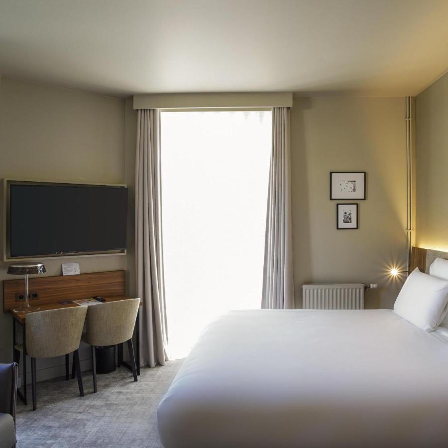 El hotel Mercure Rennes Centre Place Bretagne, ubicado en un edificio clasificado, ofrece una experiencia que combina encanto histórico y modernidad. Situado en el corazón del centro histórico de Rennes, este establecimiento completamente renovado le recibe en un entorno tranquilo y elegante. Al llegar, apreciará la decoración contemporánea del lugar, donde cada detalle ha sido pensado para ofrecer un ambiente luminoso y relajante. Las habitaciones, espaciosas y cómodas, le permitirán relajarse plenamente después de un día de visitas o trabajo. Cada una está equipada con un televisor con sistema Chromecast, conexión Wi-Fi gratuita y productos de aseo de calidad de Nuxe, asegurando así una comodidad óptima durante toda su estancia.