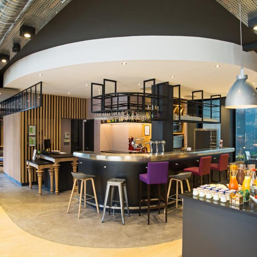L'area bar dell'hotel, Le Comptoir, è un luogo accogliente dove potrete rilassarvi con un drink o gustare una selezione di snack, godendo della vista sul patio interno. Quest'ultimo, con le sue ampie vetrate, costituisce un vero angolo di pace nel cuore della città. Troverete anche giochi da tavolo e una biblioteca, con libri e riviste disponibili per arricchire i vostri momenti di relax.